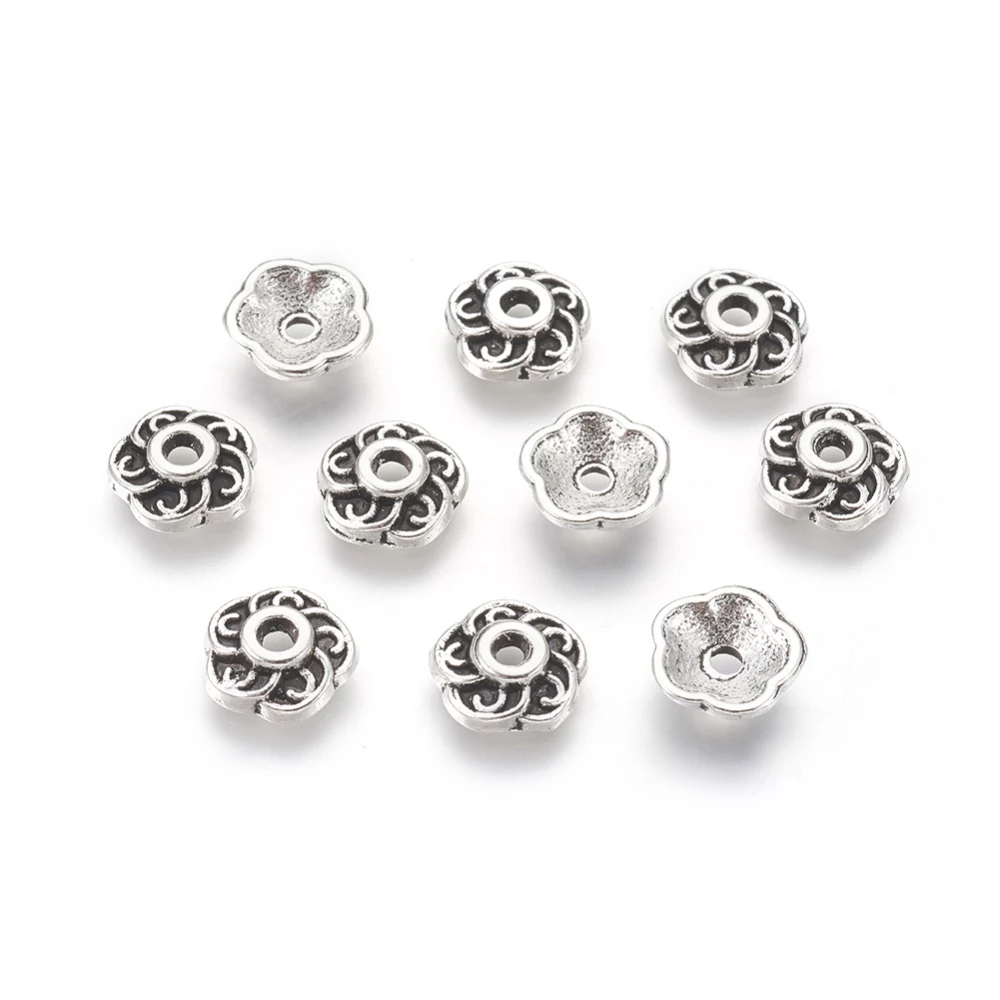 10db antikolt ezüst virág alakú gyöngykupak (9x3mm)