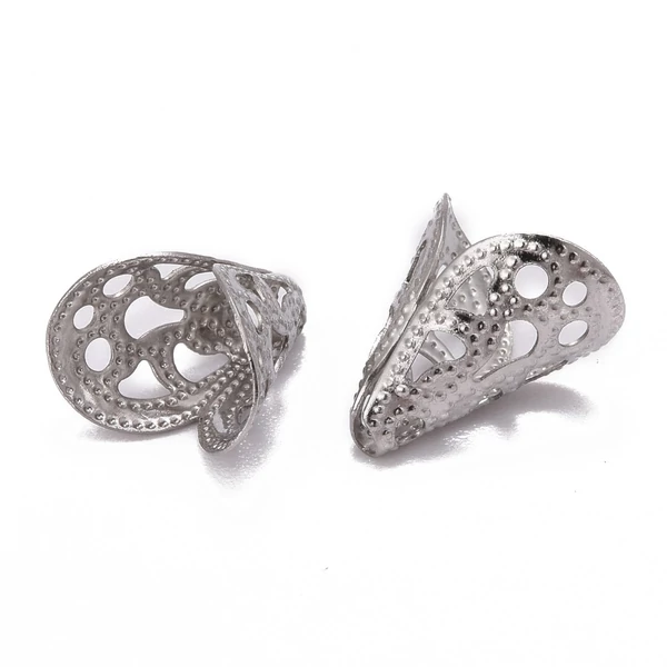 A 10 db nemesacél csúcsos gyöngykupak tökéletes megoldás a gyöngy díszítésére és a kreatív ékszerkészítéshez. Ezek a 12x10 mm-es kupakok elegáns megjelenésüknek köszönhetően kifinomultabbá teszik az elkészült alkotásokat. A nemesacél anyag nemcsak tartósságot, hanem gyönyörű fényt is biztosít, így a gyöngy végére került kupakok igazán figyelemfelkeltő részletekké válnak. 10 darabos kiszerelésben érkeznek, így bőséges lehetőséget kínálnak minden kreatív projekthez!