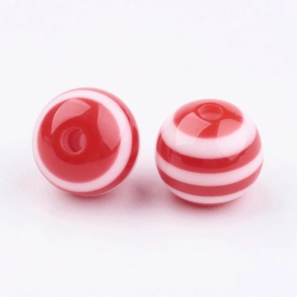 10db Piros-fehér csíkos műanyag gyöngy (8mm)