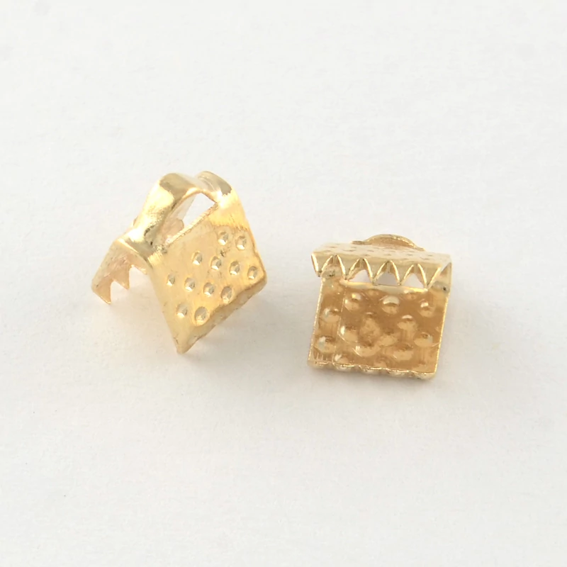 A 10db világos arany színű szalagvégzáró tökéletes választás, ha szeretnéd lezárni szalagjaidat stílusosan. A 6x7mm méretű zárók ideálisak fonott ékszerekhez, dekorációs projekteket és kreatív hobbi munkákat is egyaránt feldobnak. A fényes, világos arany szín elegáns megjelenést kölcsönöz, míg a tartós vas anyag biztosítja a hosszú élettartamot. Használj a csomagban található 10db szalagvégzárót, hogy minden szalagod tökéletesen illeszkedjen, és garantálj számára tartós lezárást!