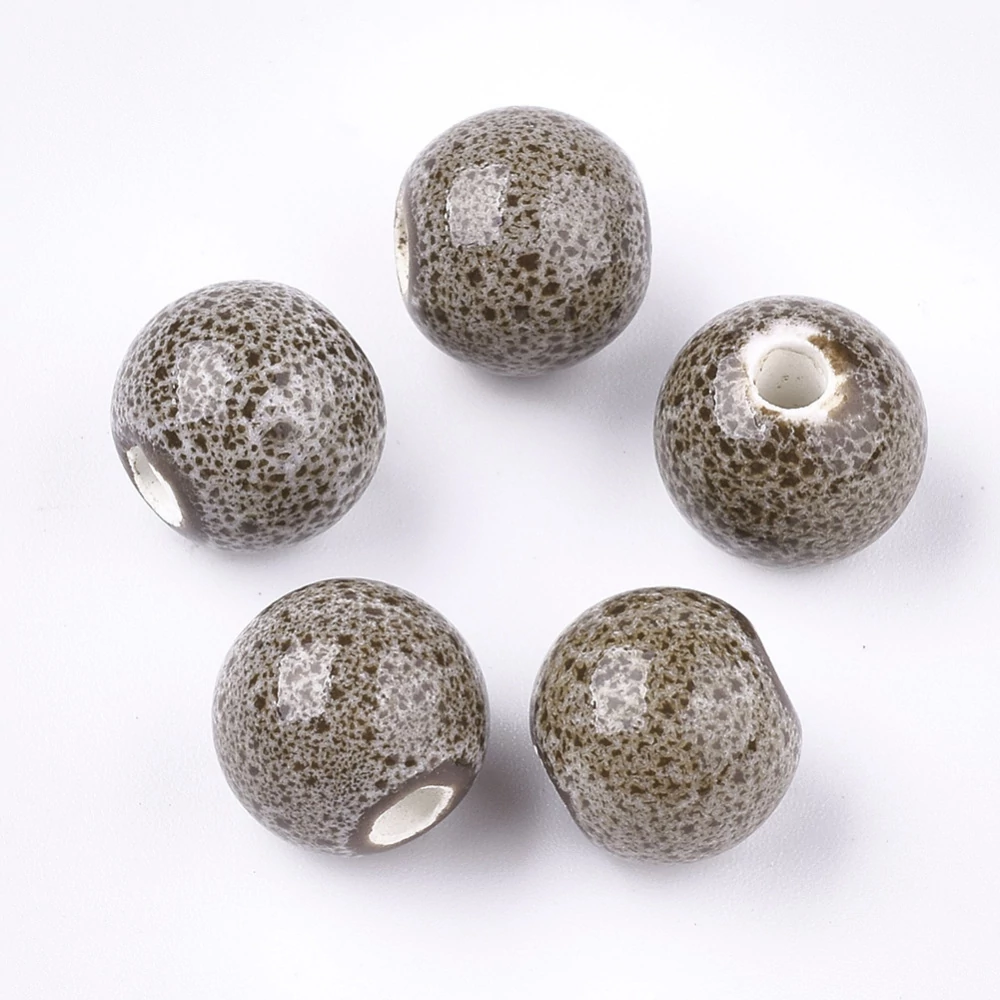 2db Antik mázas barna mintás porcelán, kerámia gyöngy (10mm)