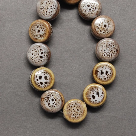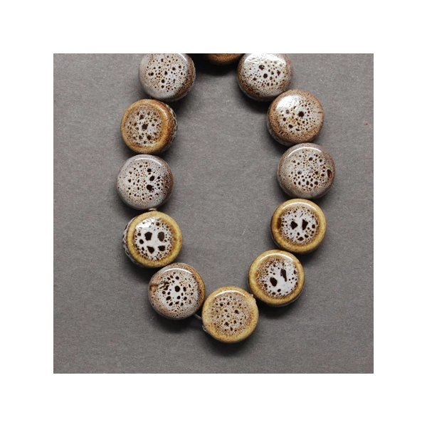 2db Antik mázas barna színű porcelán, kerámia gyöngy (12mm)
