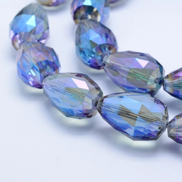 2db Búzavirágkék színű csiszolt üveggyöngy (25x18mm)