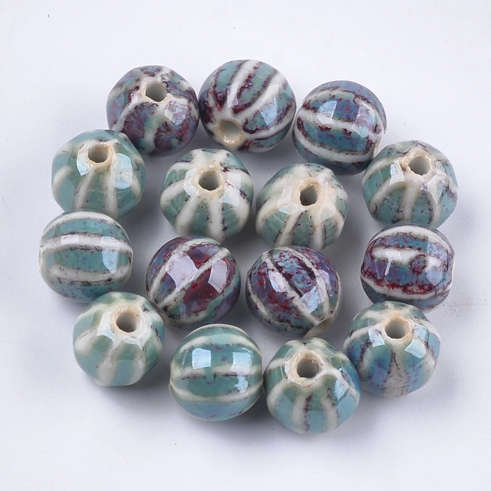 2db Kék csíkos porcelán, kerámia gyöngy (12x10mm)