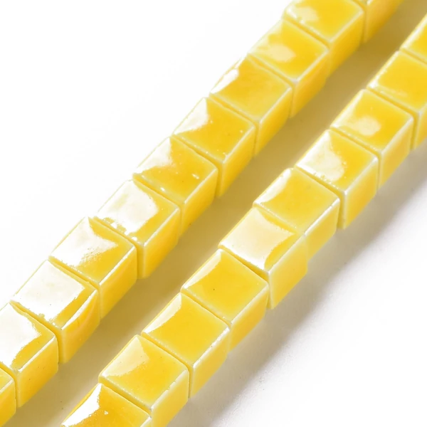 4db Kocka alakú, sárga színű porcelán, kerámia gyöngy (6mm)