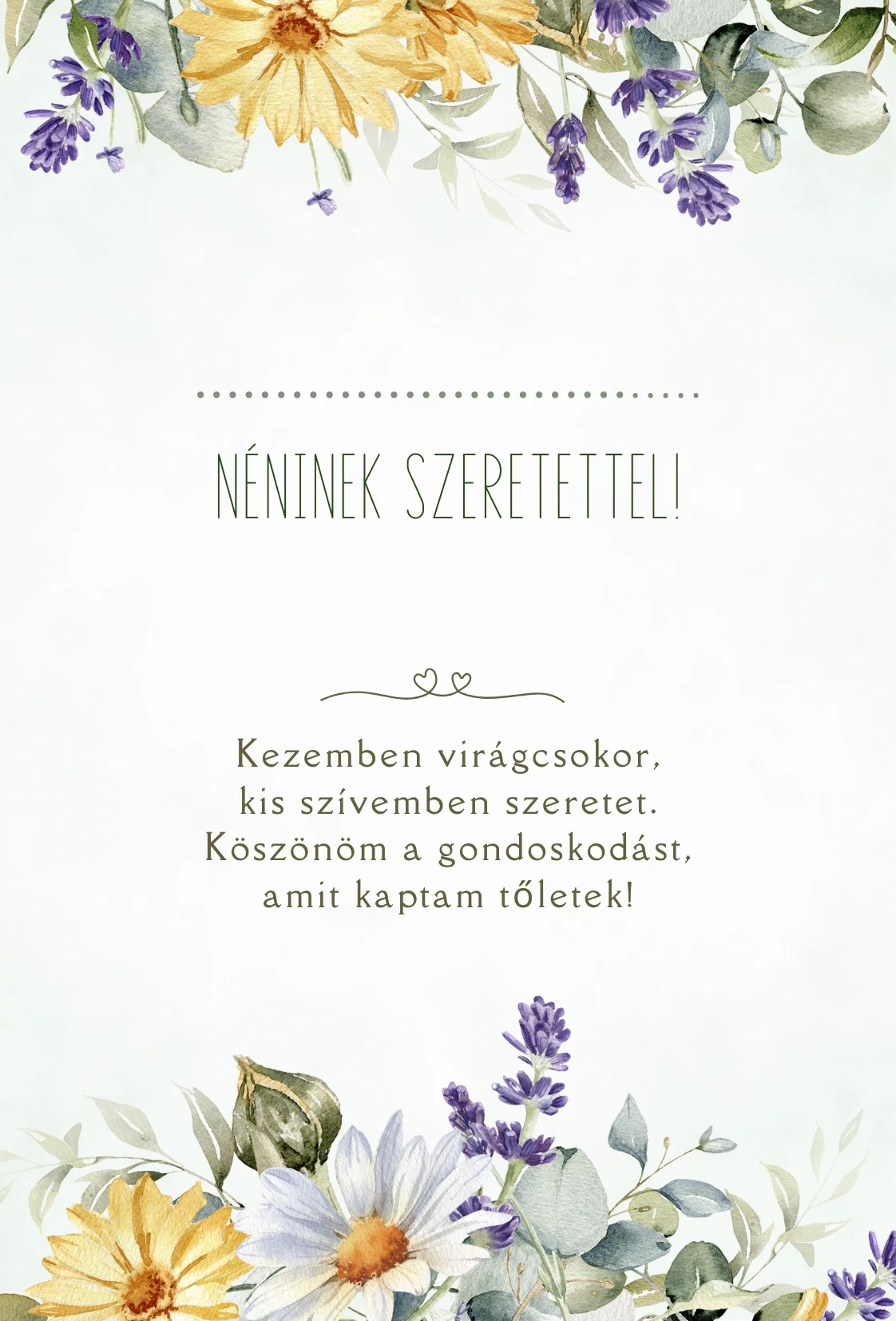 Egy különleges ajándék mindig csak jól mutathat egy elegáns, figyelmes kísérő kártya mellett! Az „..... Néninek Szeretettel!” ajándék kísérő kártya ideális választás, ha a szeretetet papírra szeretné ültetni. Papírból készü, masni vagy egy szép díszcsomagolás mellett tökéletes kiegészítője lehet ékszer csomagolásának is. Mérete 14x9,5 cm, így könnyen elhelyezhető bármilyen ajándékdobozi megoldás mellett. Az arany színű papír díszdobozba rejtett ajándék igazán emlékezetes pillanatokra vágyik, válassza ezt a kártyát, és varázsoljon mosolyt az ajándékozott arcára!