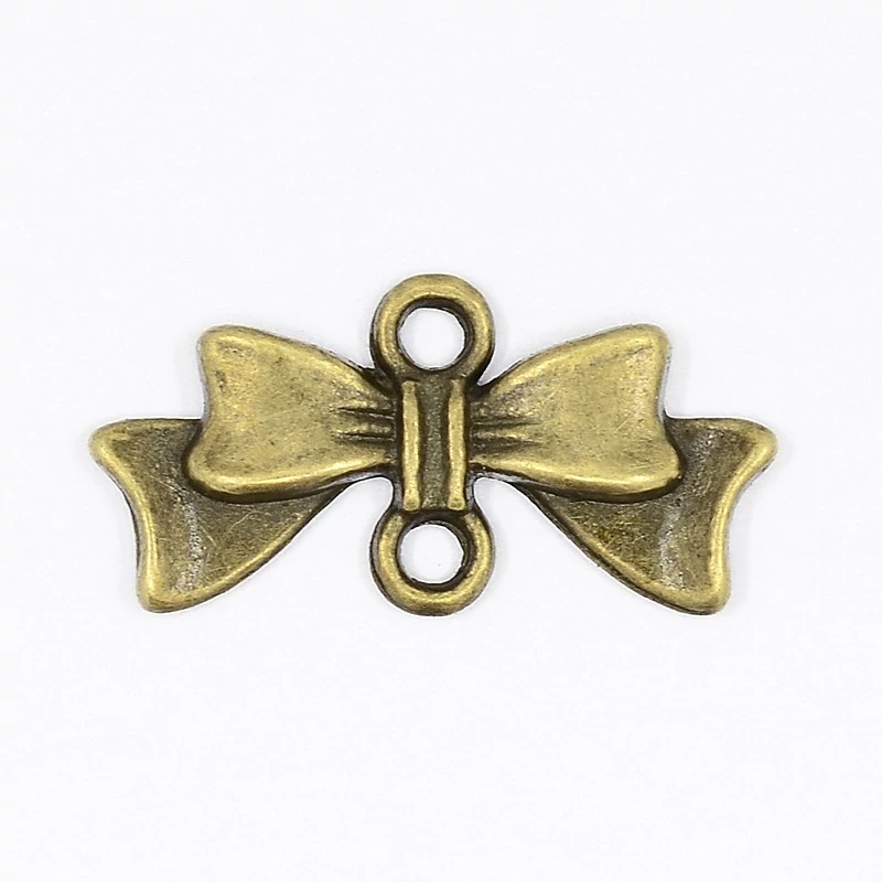 Az antikolt bronz színű masni kapcsolóelem ideális választás minden ékszerkészítő számára, aki különleges és stílusos kiegészítőket szeretne létrehozni. Ezek a 20x10 mm méretű fémötvözet elemek nemcsak esztétikusak, hanem nikkelmentes kialakításukkal kényelmet is kínálnak viselőjüknek. A csomag 4 darabot tartalmaz, így bőségesen elegendő anyagot biztosít a saját egyedi karkötők és ékszerek tervezéséhez. Élvezze a kreativitást, és alakítson ki gyönyörű ékszereket ezekkel a huncut kis összekötő elem masnikkal!