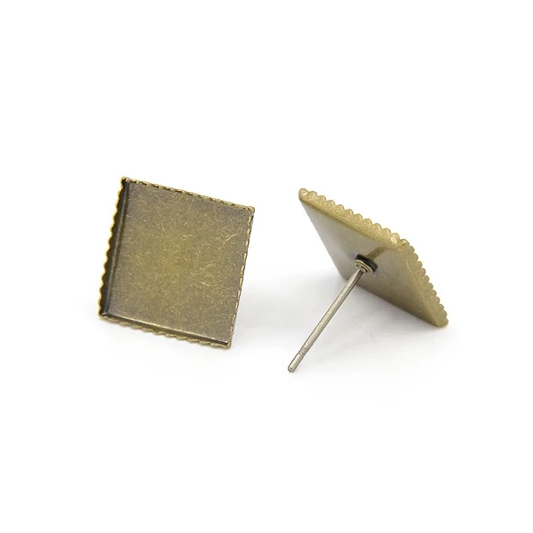 Antikolt bronz színű négyzetes fülbevalóalap (12x12mm)