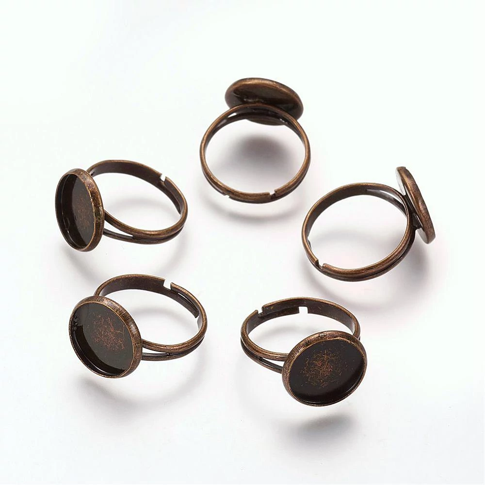 Antikolt bronz színű gyűrűalap. Sima szélű állítható gyűrűalap.