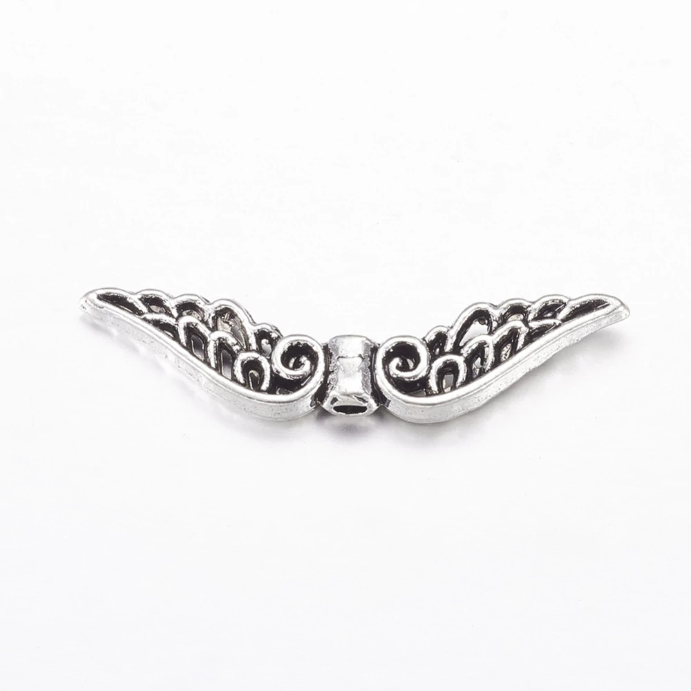 A szárnyak mérete 32x6 mm, ami ideálissá teszi őket, hogy finom részleteket és egyedi karaktert kölcsönözzenek a készített ékszereknek. Az antikolt ezüst szín eleganciát és vintage hangulatot áraszt, így mindenki figyelmét magára vonja.