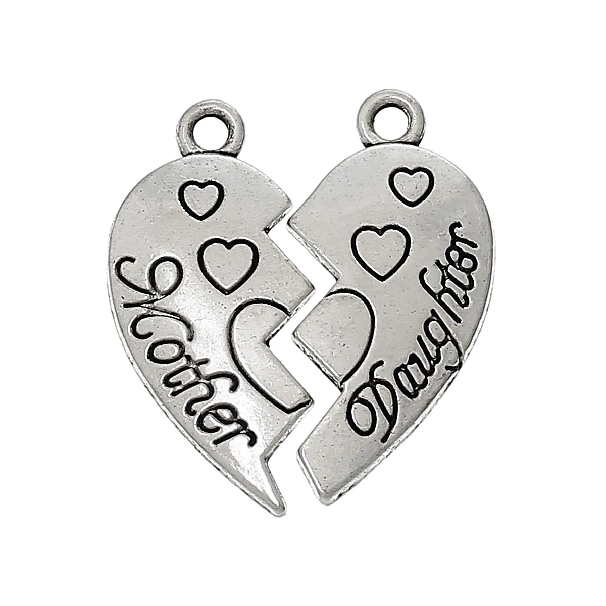 Antikolt ezüst színű anya-lánya szív alakú páros medál
