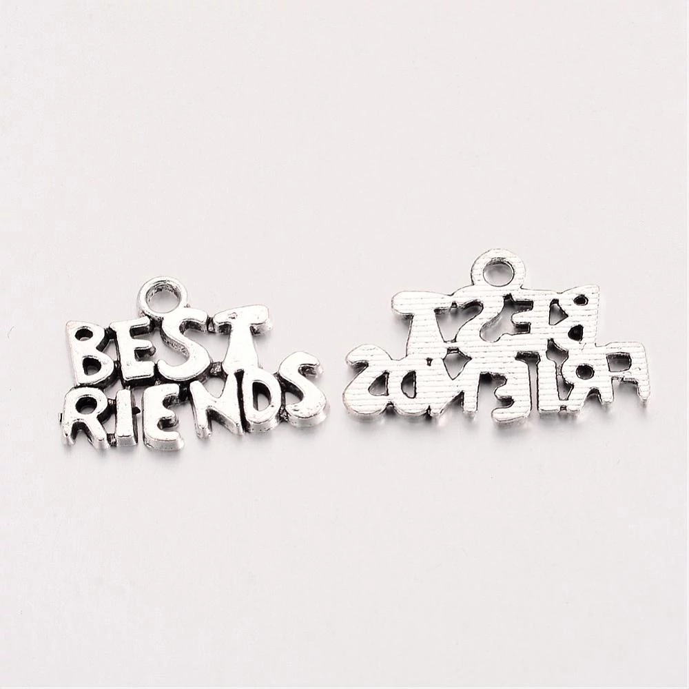 Antikolt ezüst színű best friends alakú fityegő/2db