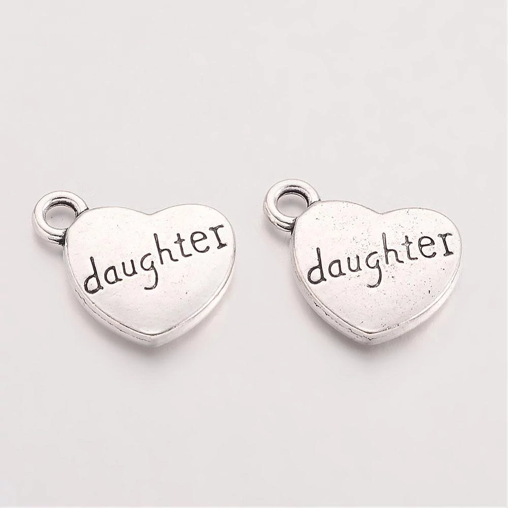 Antikolt ezüst színű daughter szív alakú fityegő/2db