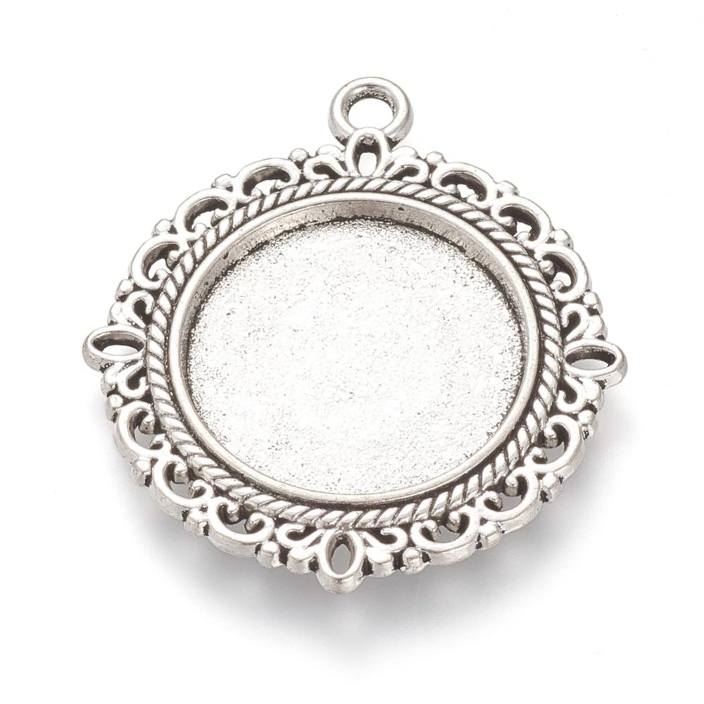 Antikolt ezüst színű díszes medálalap (20mm) (hagyományos)
