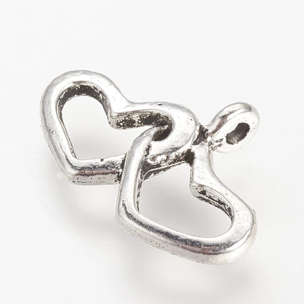 Antikolt ezüst színű dupla szív fityegő/4db