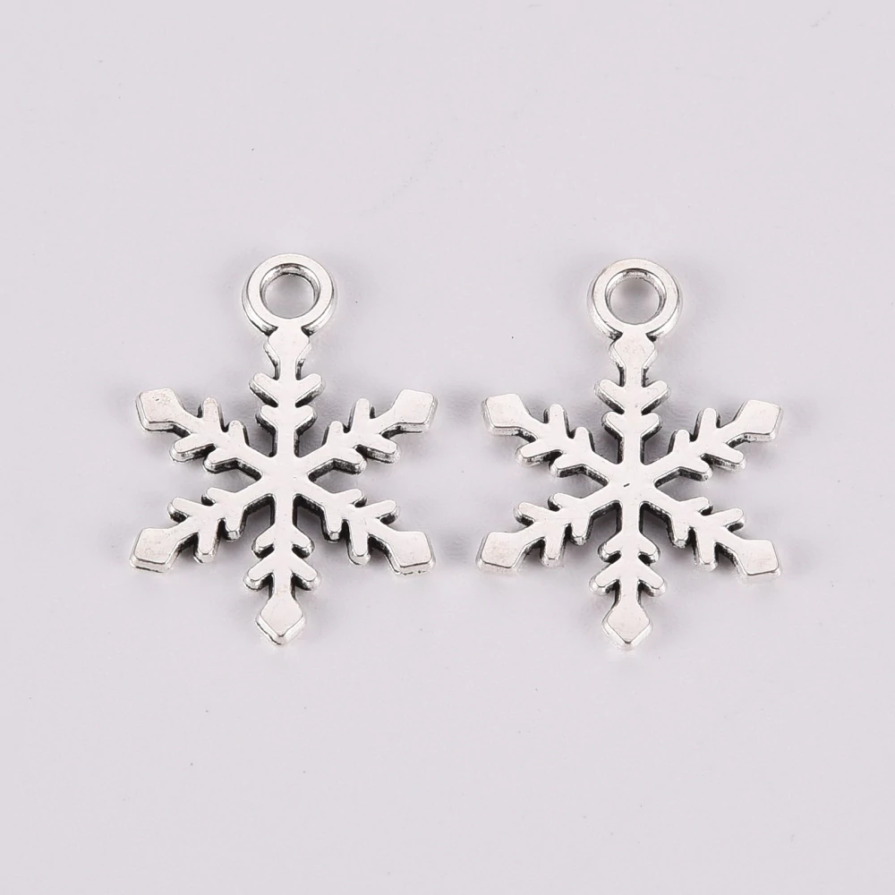 Antikolt ezüst színű hópihe fityegő (18x13mm)/4db