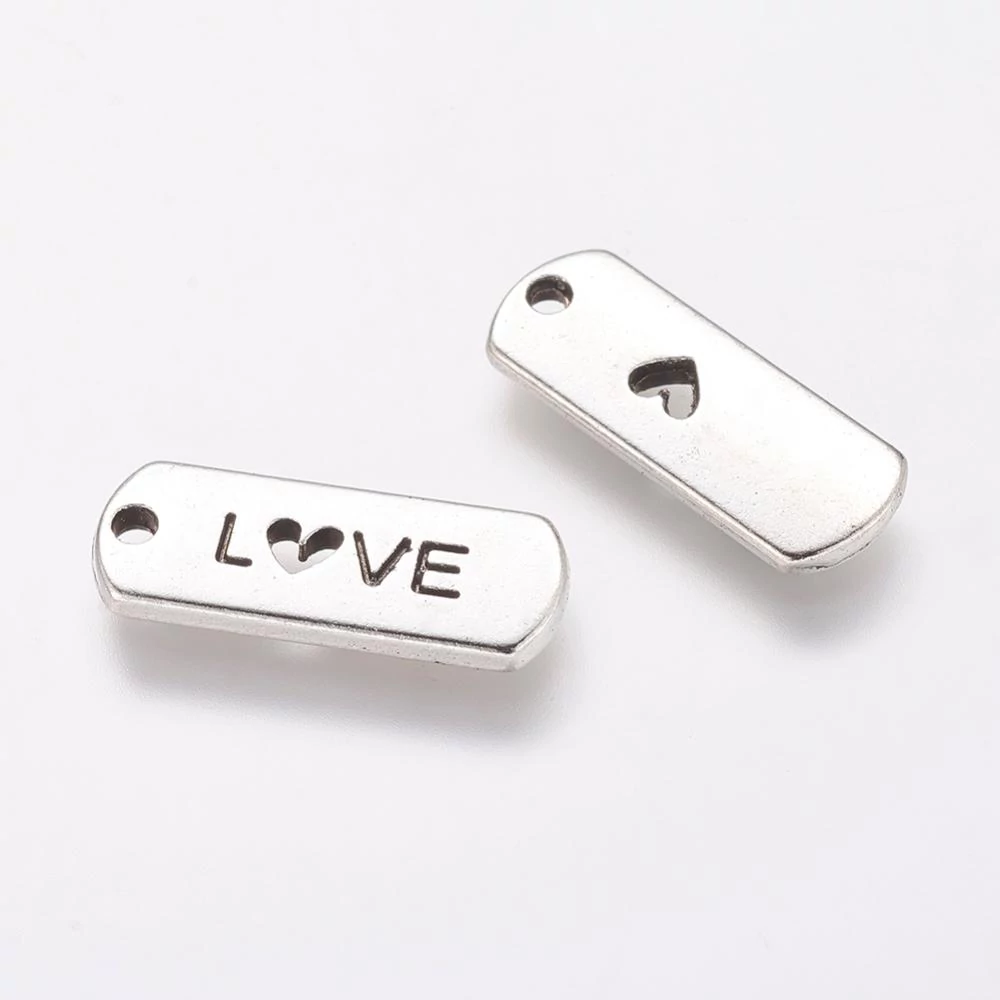 Antikolt ezüst színű love feliratos fityegő/2db
