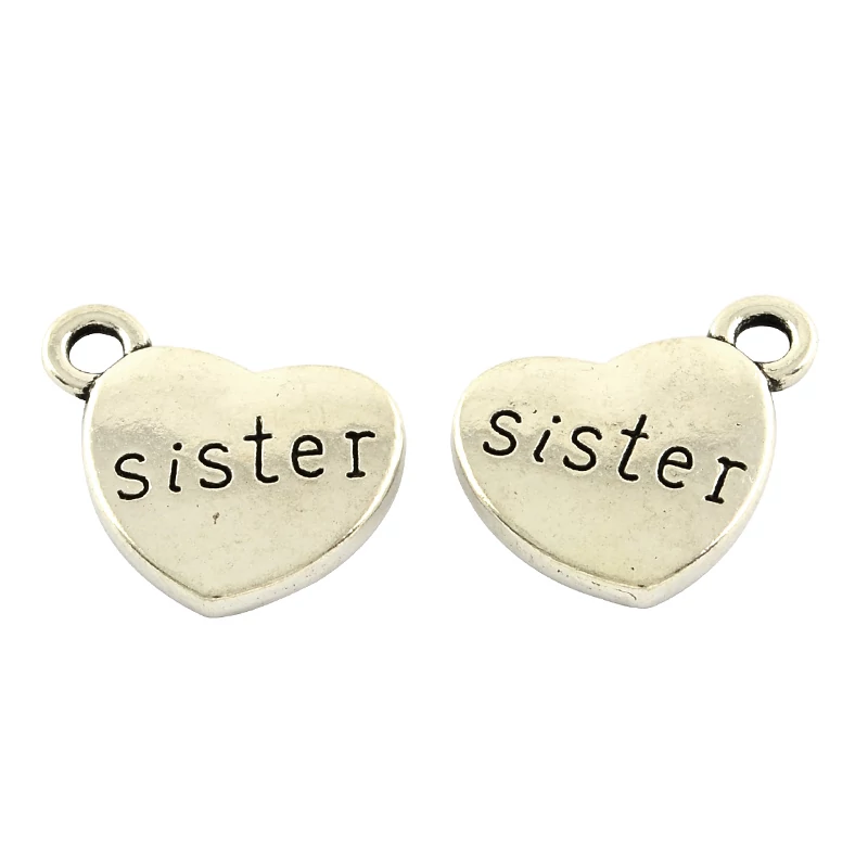 Antikolt ezüst színű sister szív alakú fityegő/2db