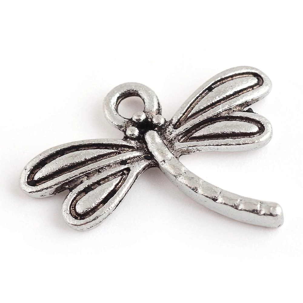 Antikolt ezüst színű szitakötő fityegő