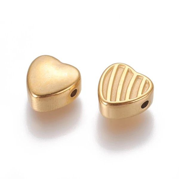 Arany nemesacél szív gyöngy (10,5x10,5x5,5mm)