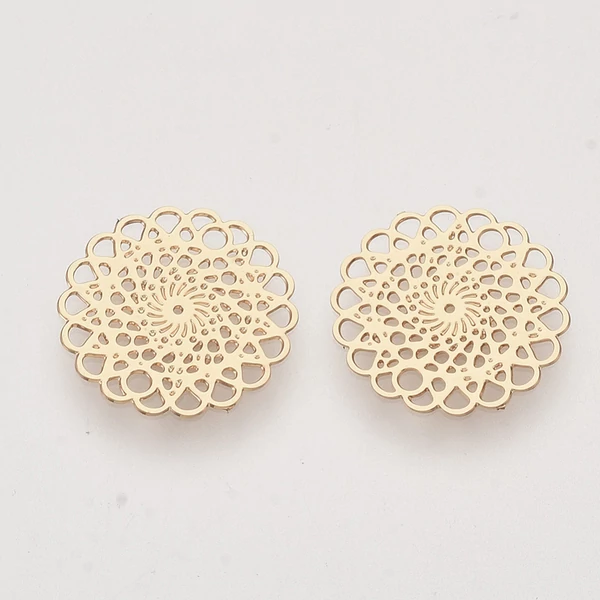 Az arany színű filigrán kapcsolóelem tökéletes választás mindazoknak, akik szeretnék ékszereiket egyedivé varázsolni. E két darabos kiszerelésű, 13 mm-es bronz elemek remekül alkalmazhatók karkötők készítésénél, mivel elegáns megjelenésük és tartós bevonatuk biztosítja, hogy ékszereid hosszú távon megőrizzék vonzerejüket. A 1,2 mm-es lyuk lehetővé teszi a könnyű összekötést más elemekkel, így kreatív ötleteid szabadon kibontakozhatnak. Használj ezekkel az elemekkel, hogy stílusos és exkluzív ékszereket készíthess!
