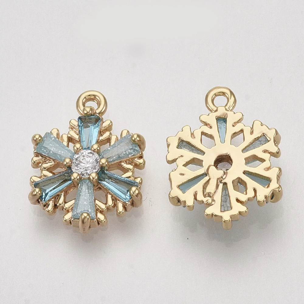 Arany színű kék hópihe cirkónia charm/fityegő 18K arany bevonattal