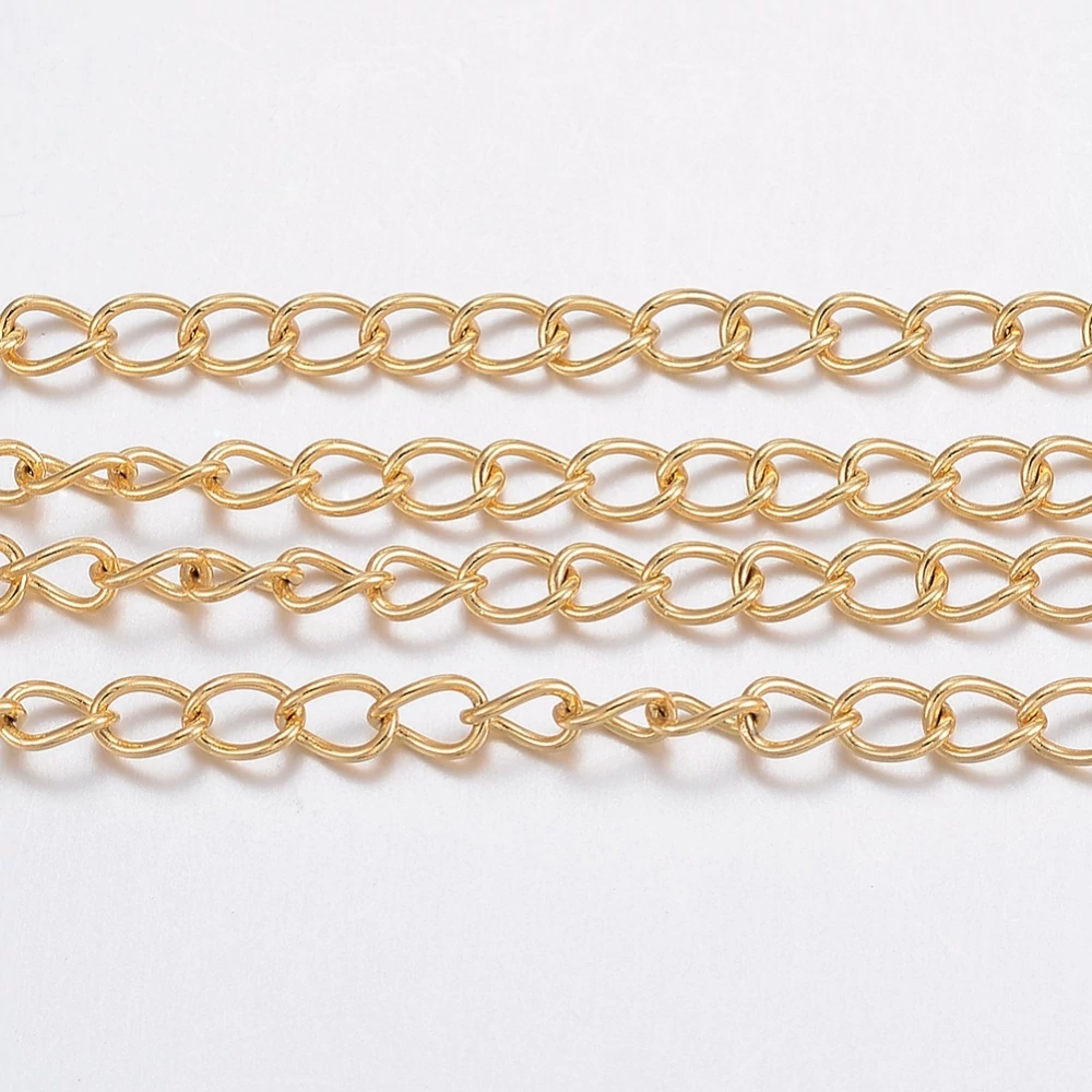 Az arany színű nemesacél csavart szemű ékszerlánc kivételes választás minden kreatív alkotónak. Az ellenálló nemesacél alapanyagának köszönhetően hosszú élettartamú, és nem veszít szépségéből idővel. A csavart szemek elegáns megjelenést kölcsönöznek a láncnak, lehetővé téve, hogy az összetett darabok könnyedén felakaszthatóak legyenek. A 3,5x2,5mm-es méret ideális mind a finom, mind az erősebb darabokhoz, lehetővé téve a változatos tervezési lehetőségeket. Kiváló minőségű anyag, melynek fénye és tartóssága garantálja, hogy az elkészült ékszer mindig kiemelkedő maradjon.