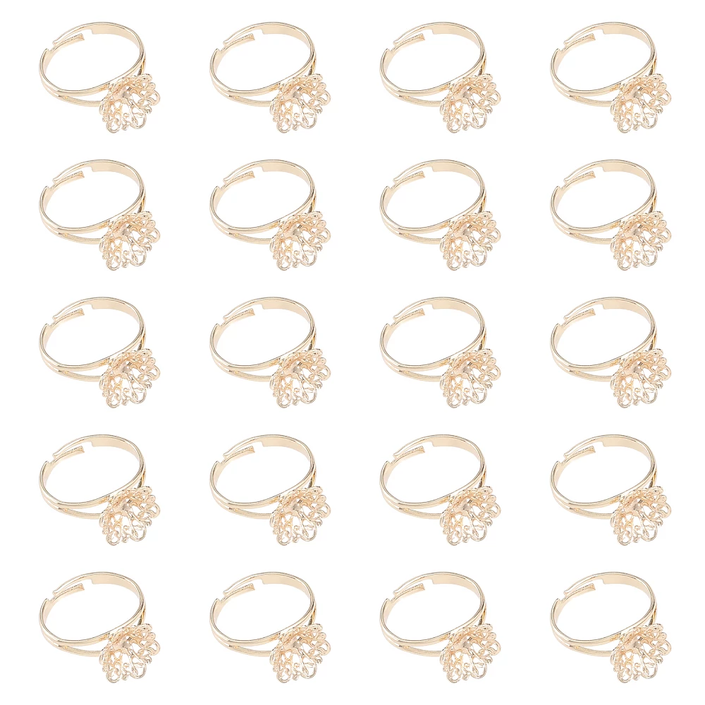 Az arany színű virág foglalatos, állítható gyűrű tökéletes kiegészítője minden ruhatárnak. Ez a díszíthető gyűrű szemet gyönyörködtető megjelenésével garantáltan feldobja a mindennapokat. A bronz anyag és a 17mm-es méret kombinációja biztosítja, hogy kényelmes és stílusos viselet legyen. A 13x12mm-es foglalat ideális alapot nyújt ragasztható strasszok vagy gyöngyök elhelyezésére, így a gyűrűt a saját ízlésed szerint alakíthatod. Légy kreatív, és varázsolj belőle egy igazán egyedi ékszert!