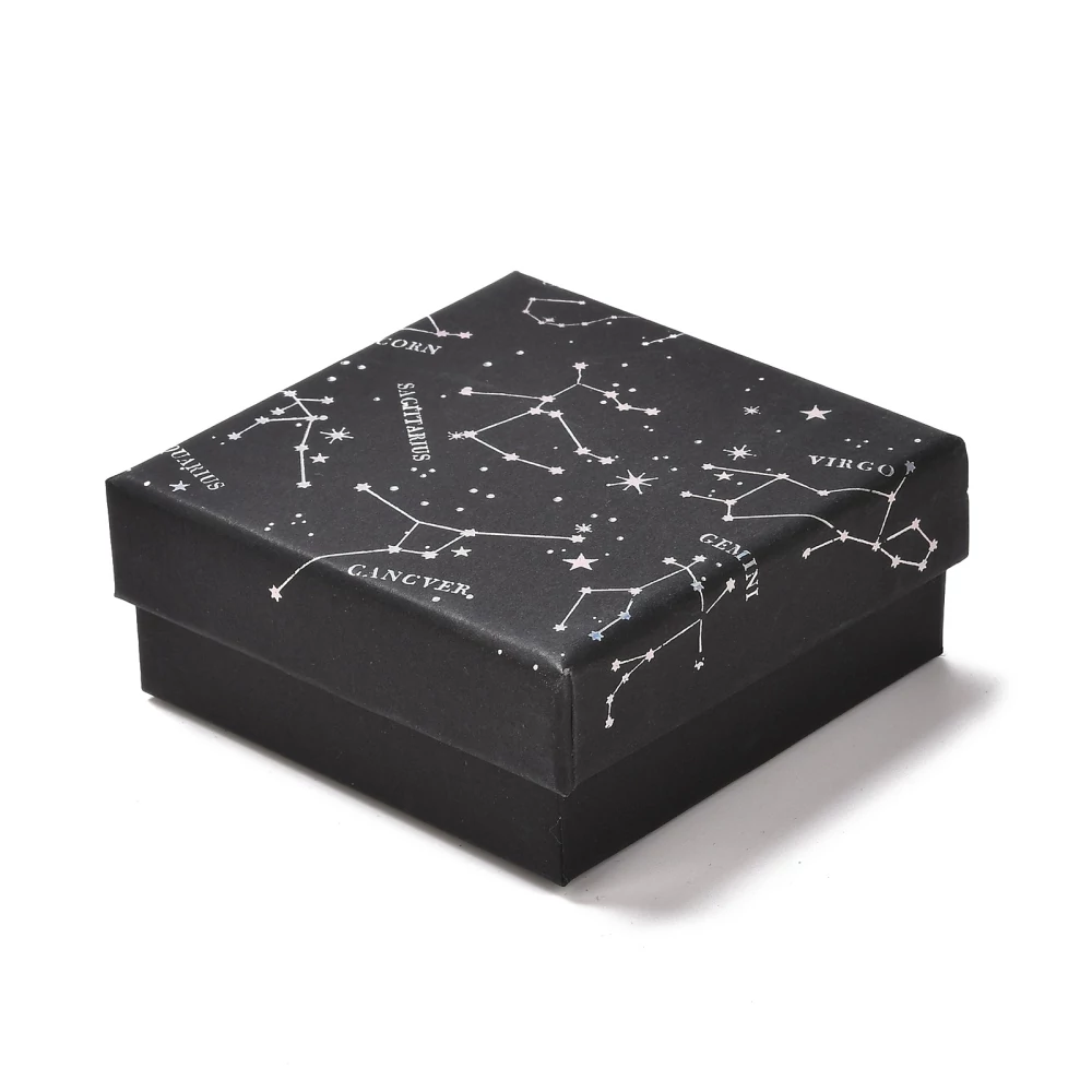 Csillagképes fekete papír díszdoboz (7,3x7,3x3,2cm)