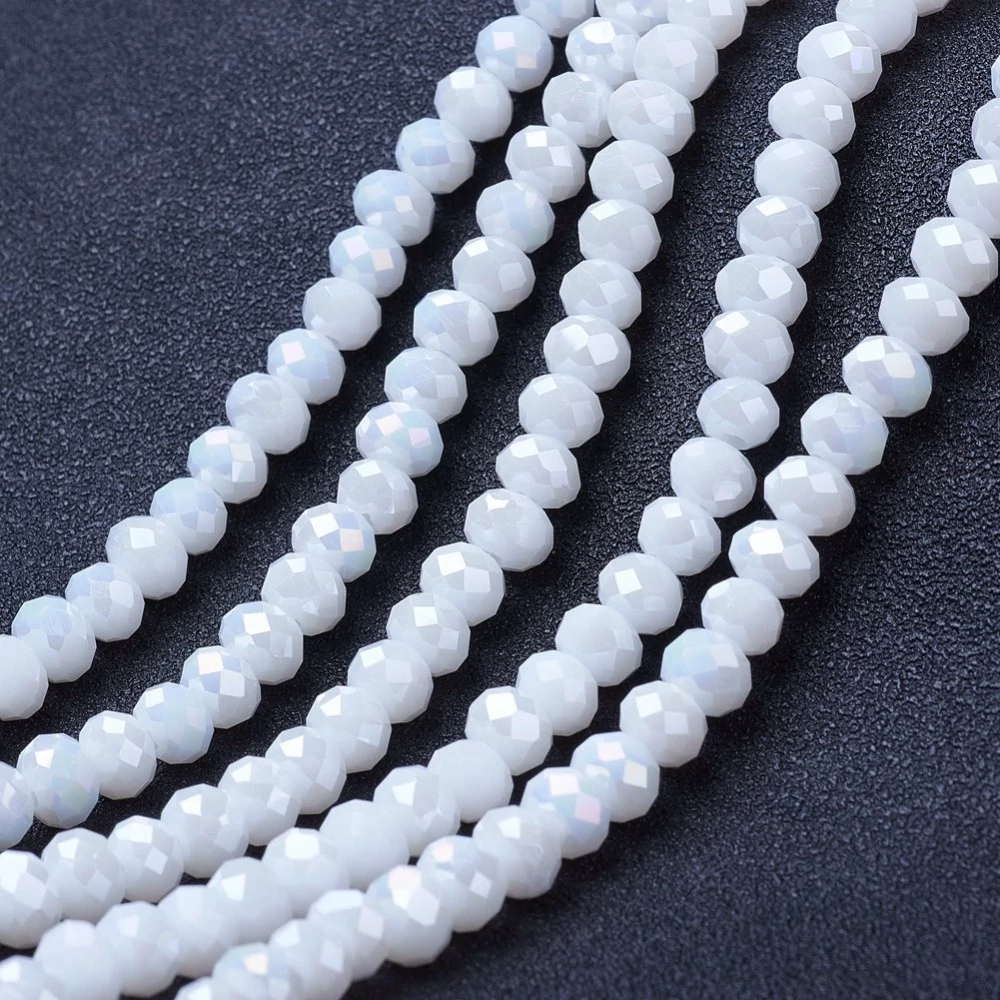 Csiszolt fehér üveggyöngy szálban (8x6mm)/68db