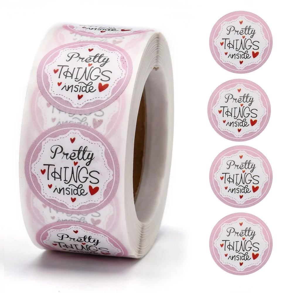 Csomagoláshoz matrica Pretty things inside felirattal (500db)