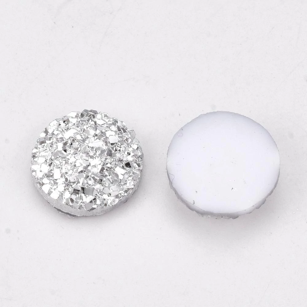 Ezüst színű druzy műgyanta kabochon (12mm) /4db