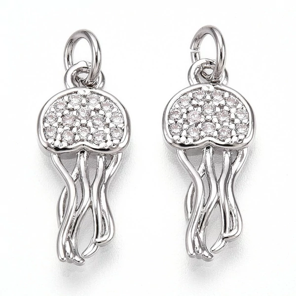 Az ezüst színű medúza cirkónia fityegő tökéletes kiegészítője lehet minden ékszerkollekciónak. A 18x8x2.5 mm-es méretének köszönhetően elegáns módon díszítheti bármilyen nyakláncot vagy karkötőt. A fényesen csillogó fémötvözetből készült charm kis mérete ellenére nagy hatással van megjelenésére. A 3 mm-es lyuk lehetővé teszi a könnyű felfűzést, így azonnal beleépítheti a saját stílusába. Minden egyes darab egyedi karaktert ad ékszeréhez, igazi ékkő lesz a mindennapokban!