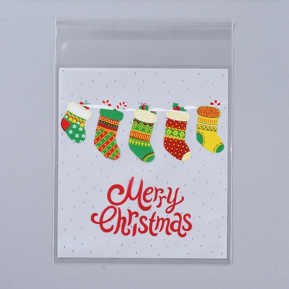 Fehér karácsonyi mintás bopp tasak (13x10cm) / 100db