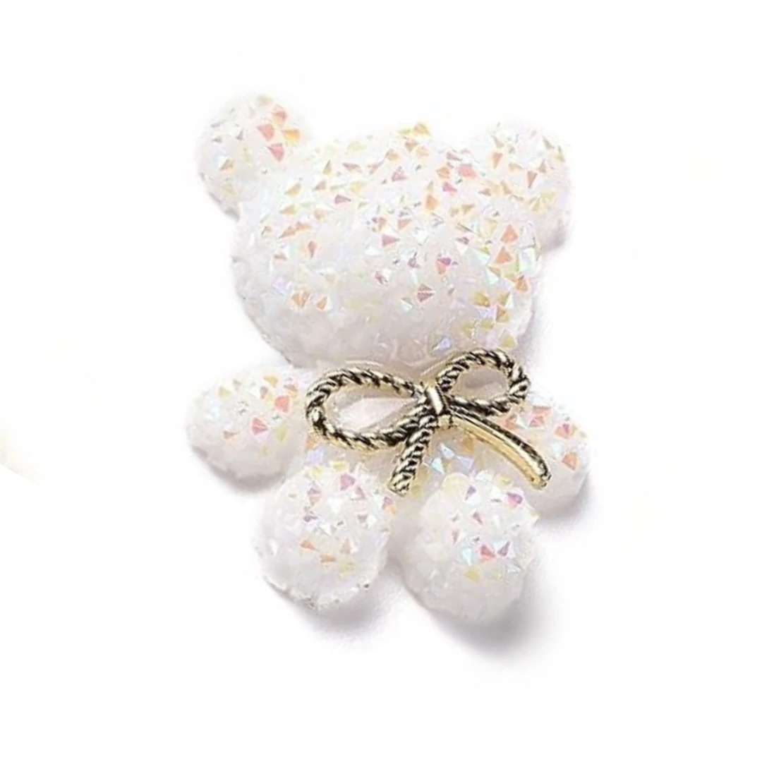 Fehér maci műgyanta kaboson  (32x25x10mm)