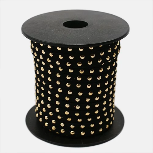 A fekete színű arany szegecses hasított bőrszál nemcsak stílusos, hanem sokoldalú alapanyaga is az ékszerkészítésnek. A 5 mm széles, préselt bőrszál kiválóan alkalmas nyakláncok és karkötők készítésére. Használhatod fonott dizájnokhoz, vagy egyszerű, elegáns ékszerekhez is. Az arany szegecsek művészi megjelenést kölcsönöznek, kiegészítve a színes bőrvégzárókat. A kiszerelés praktikus, hiszen 1 méter bőrszálat kapsz, de tetszés szerint több darabot is választhatsz, így mindig a megfelelő hosszúságú anyag áll rendelkezésedre.