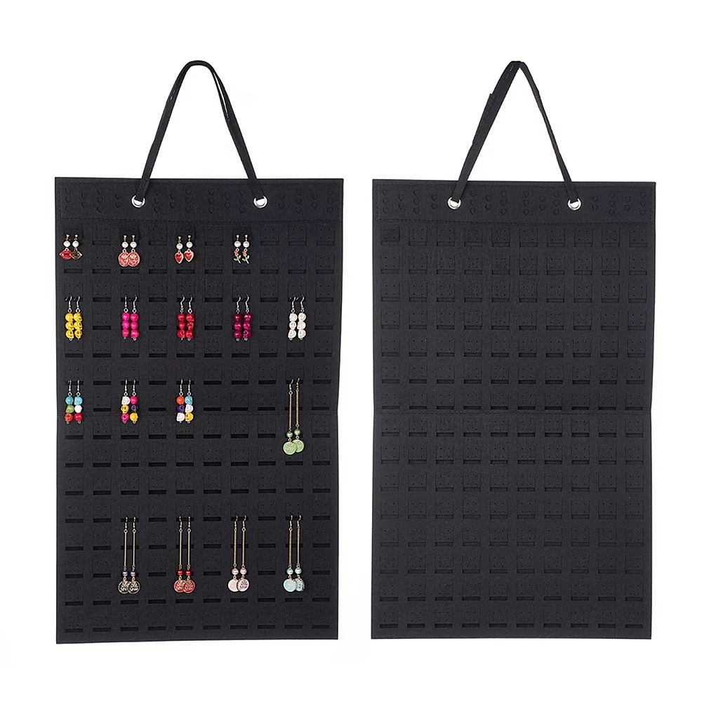 Ez a felakasztható fekete színű fülbevaló tartó állvány tökéletes megoldás az ékszerek rendezett tárolására és bemutatására! A 57x35 cm-es méretének köszönhetően könnyedén elhelyezhető bármilyen helyiségben, legyen szó fürdőszobáról vagy hálószobáról. A bársonyos anyag eleganciát kölcsönöz, miközben megóvja ékszereidet a karcolásoktól. Az állvány nemcsak a fülbevalók számára ideális, hanem nyakláncaidat is könnyedén elhelyezheted rajta, így mindig kéznél lesznek a kedvenc darabjaid!