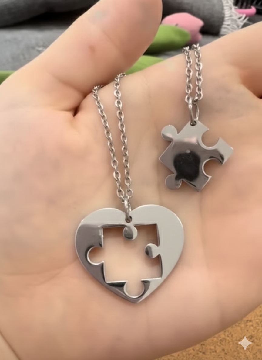 Készíts páros nyakláncot: egyikőtöké a szív, másikőtöké a puzzle darab.