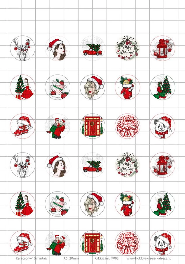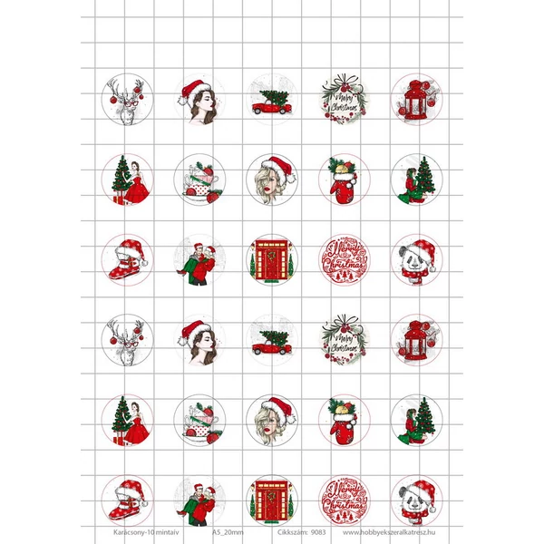 Karácsony-10 Üveglencsés ékszerpapír 20mm 15 féle minta A5