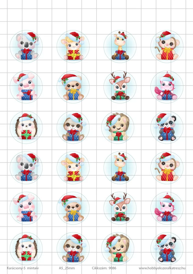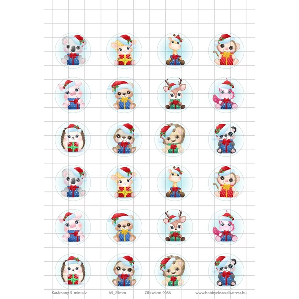 Karácsony-5 Üveglencsés ékszerpapír 25mm 12 féle minta A5