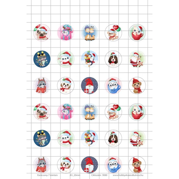 Karácsony-7 Üveglencsés ékszerpapír 20mm 15 féle minta A5