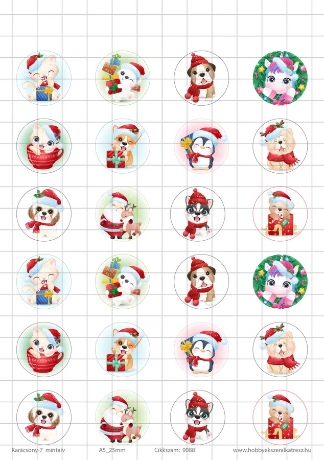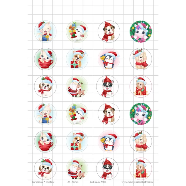 Karácsony-7 Üveglencsés ékszerpapír 25mm 12 féle minta A5