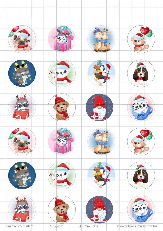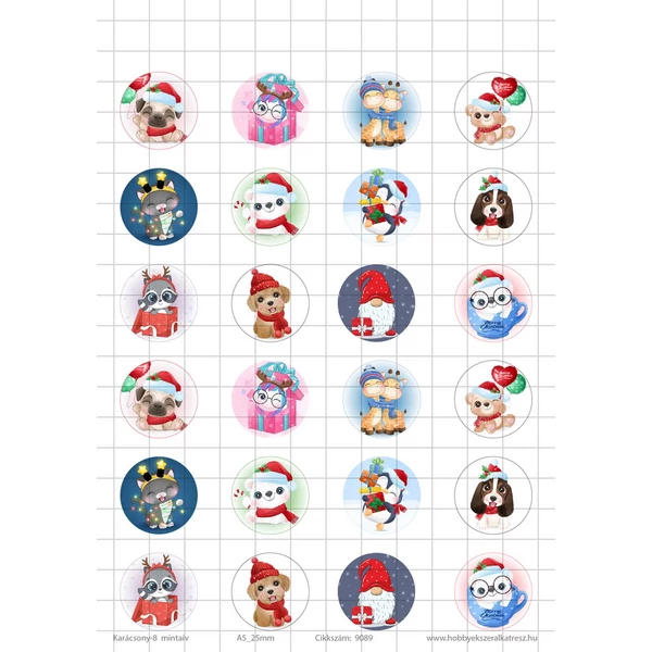 Karácsony-8 Üveglencsés ékszerpapír 25mm 12 féle minta A5