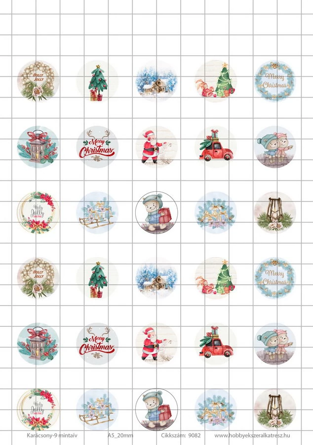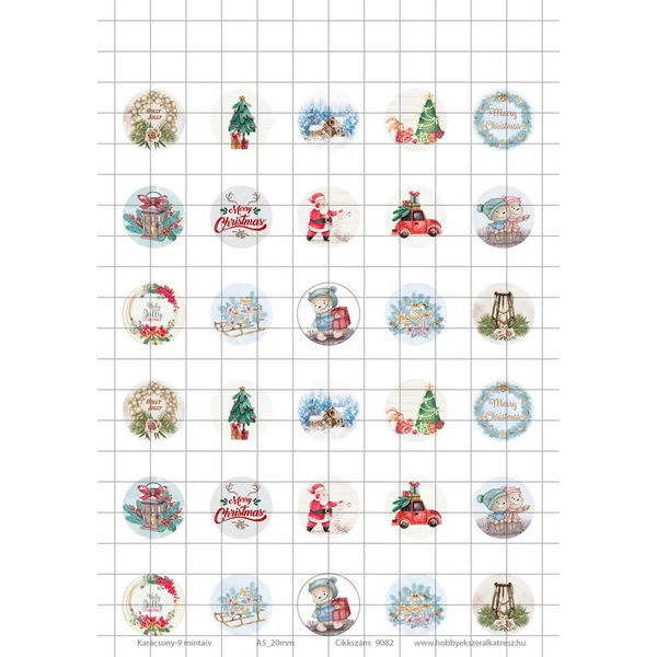 Karácsony-9 Üveglencsés ékszerpapír 20mm 15 féle minta A5
