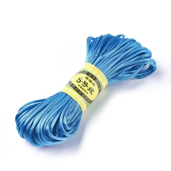 A kék színű selyem zsinór tökéletes kiegészítője lesz kreatív projektjeidnek! A 2,5 mm vastagsága ideálissá teszi fonásokhoz, makramé technikához vagy akár díszítő csúszócsomók készítéséhez is. Kiváló minőségű poliészterből készült, így tartós és rugalmas. 5 méteres kiszerelésének köszönhetően bőven elegendő anyagot biztosít az egyedi ékszerek, lakásdekorációk vagy ajándékok elkészítéséhez. Varázsolj színt és stílust műveidbe ezzel a gyönyörű kék zsinórral!