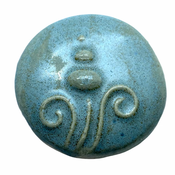 Kézműves selyemfényű világos kék porcelán korong (35mm)