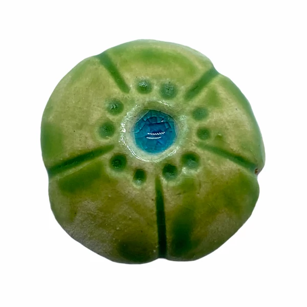 Kézműves világos zöld, virág alakú porcelán korong (25mm)