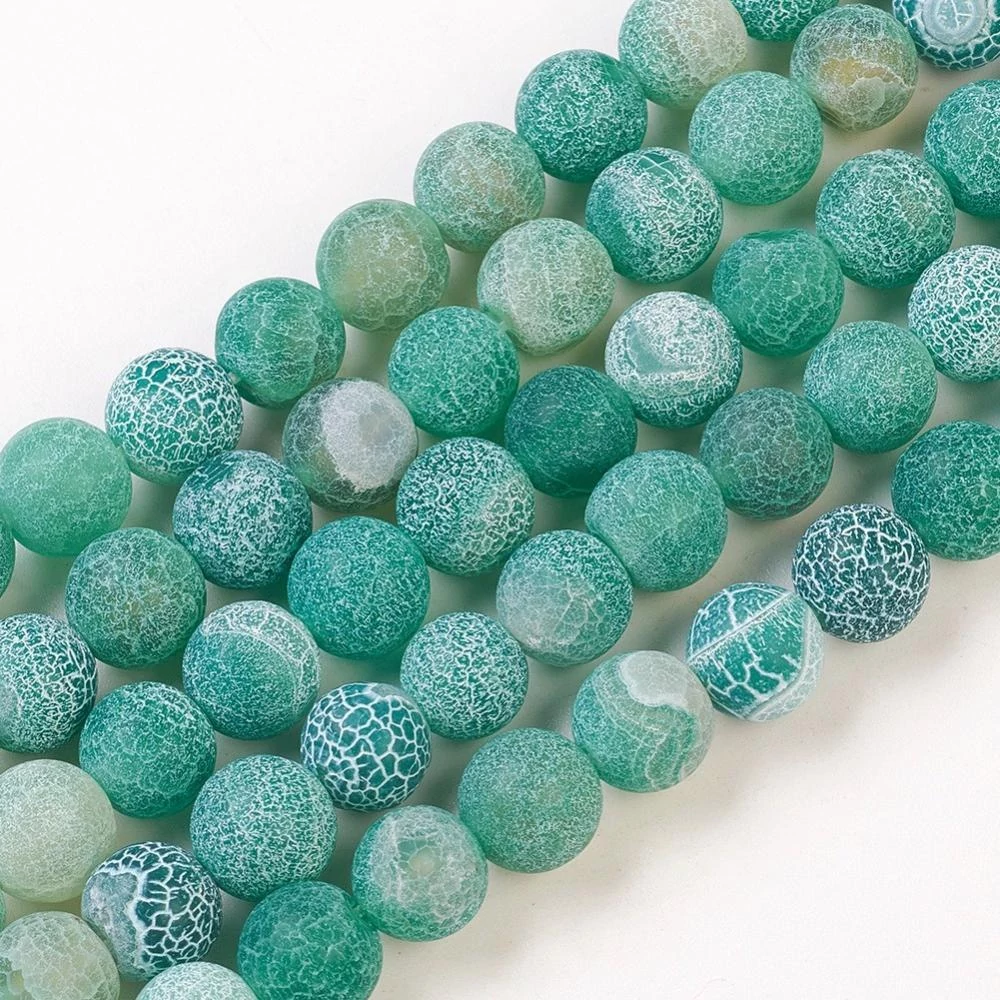 Matt zöld repesztett achát ásványgyöngy szálban (8mm)/46db