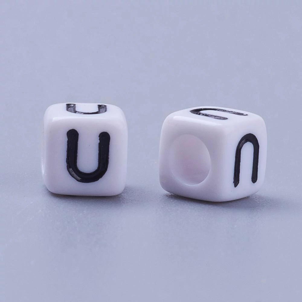 A Műanyag u betűgyöngy ideális választás minden kreatív lélek számára, aki szeretné egyedivé tenni a neves karkötőit vagy kulcstartóit. A különleges fehér-fekete színvariációjával tökéletes kiegészítője bármely terméknek, legyen szó ajándékról vagy saját készítésű dísztárgyakról. A 6x6 mm-es méretének köszönhetően könnyen illeszthető bármilyen ékszerhez, lehetővé téve a személyre szabott üzenetek megvalósítását. Használja ki a kreativitását, és varázsoljon egyedi feliratokat ezzel a sokoldalú gyönggyel! A csomag egy darabot tartalmaz, így nagyszerű lehetőség a variációkra.
