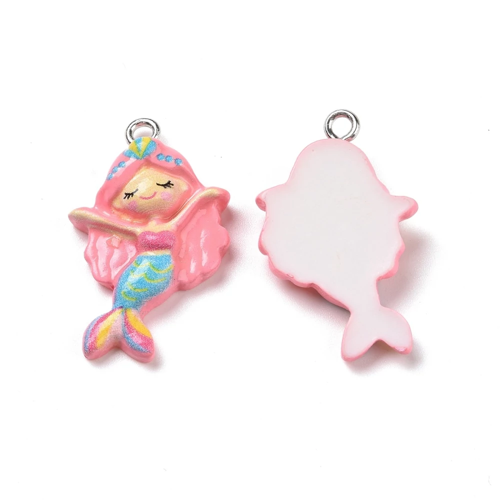 Műgyanta rózsaszín sellő medál (28x17.5x7mm)